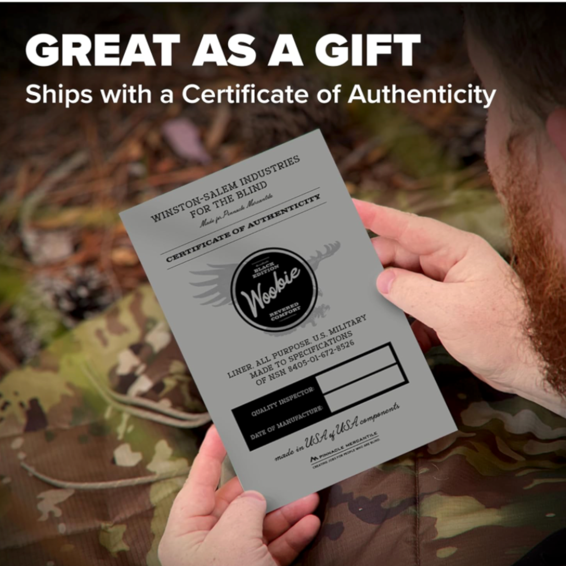 Each poncho liner ships with a certificate of authenticity verifying it meets official military specifications.